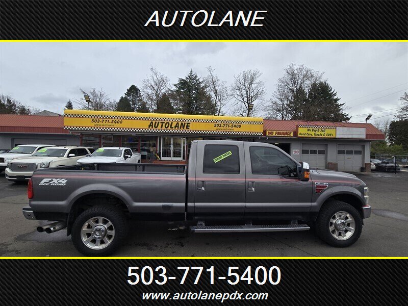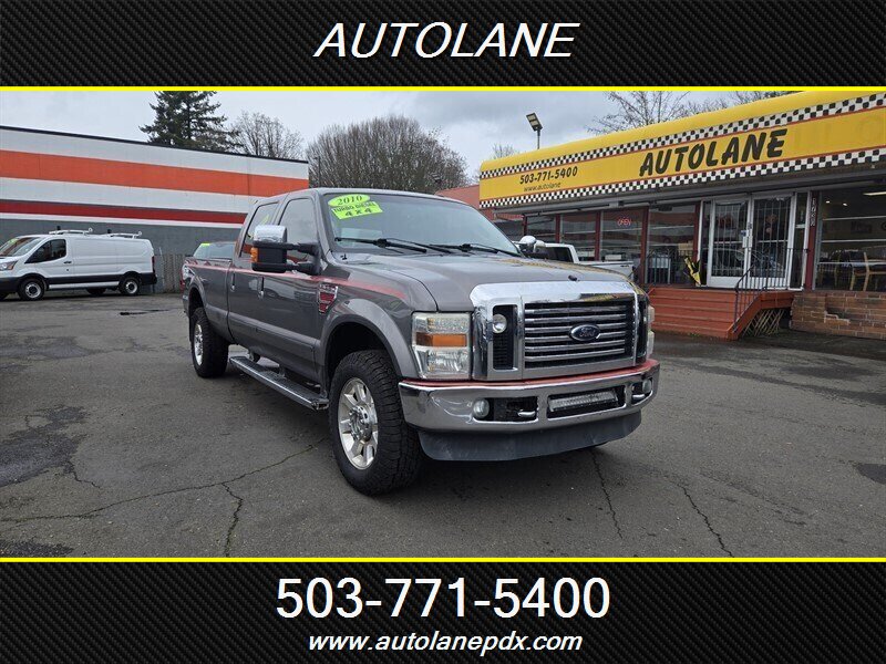 2010 Ford F-350 Super Duty Lariat powered by the Power Stroke 6.4L V8 turbodiesel (approx. 350 hp / 650 lb-ft) mated to Ford’s TorqShift 6-speed automatic transmission. Factory Lariat equipment includes leather-trimmed power front seats, dual-zone automatic climate control, power windows/locks/mirrors, remote keyless entry, cruise control and steering-wheel-mounted audio controls, AM/FM/CD audio with auxiliary input, chrome exterior trim and running boards, heavy-duty suspension and brakes, and factory towing provisions and heavy-duty drivetrain components designed for commercial towing and hauling. Vehicle is in excellent overall condition.